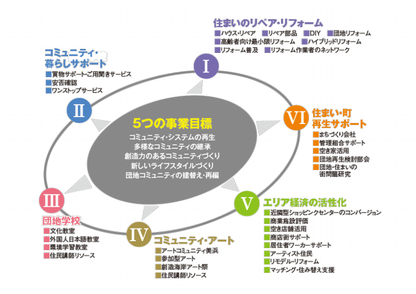 わたくしたちのさまざまな活動は、このような6つの柱から生まれてきています。地域の方々とともに地域力を高め魅力ある地域づくりと再生を実践しています。